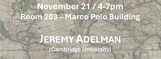 Giovedì 21 novembre, nella lezione conclusiva del corso di Methodology in the Study of Global History, Jeremy Adelman (Cambridge University) discuterà le sfide e le prospettive più attuali della Global History con gli studenti e con le studentesse di Global Humanities. L’appuntamento è nell’aula 203 dell’edificio Marco Polo, dalle 16 alle 19.